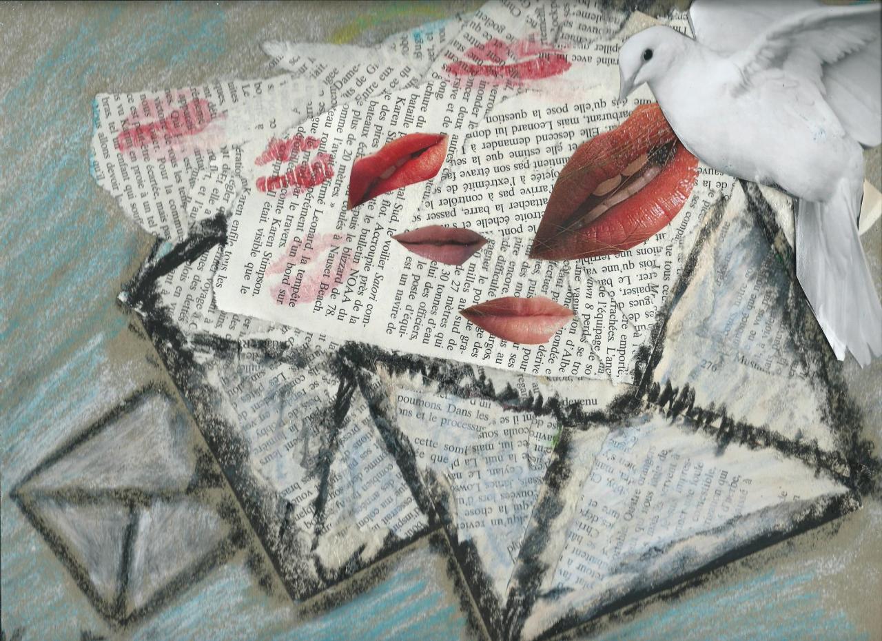 Dessin au crayon pastel et collage (2016) 15 x 21 cm